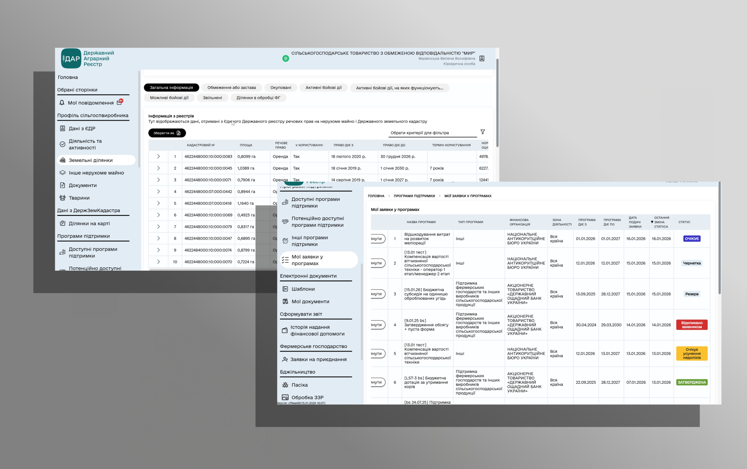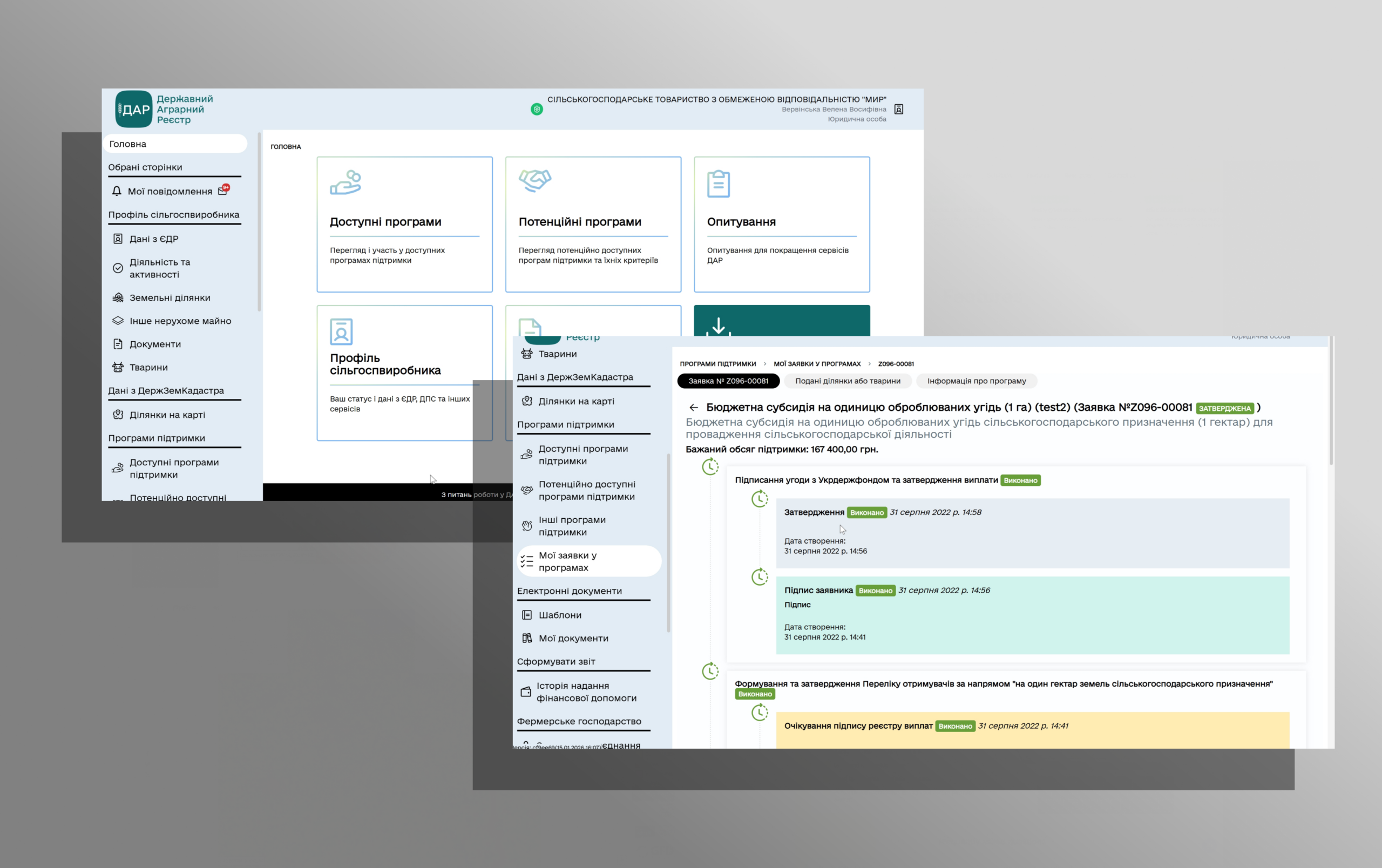 An automated electronic system designed to ensure efficient and transparent distribution of various types of support to Ukrainian agrarians — including state budget funds, concessional loans, international grants, and technical assistance. The platform integrates with government registries and provides tools for application management, reporting, and analytics.