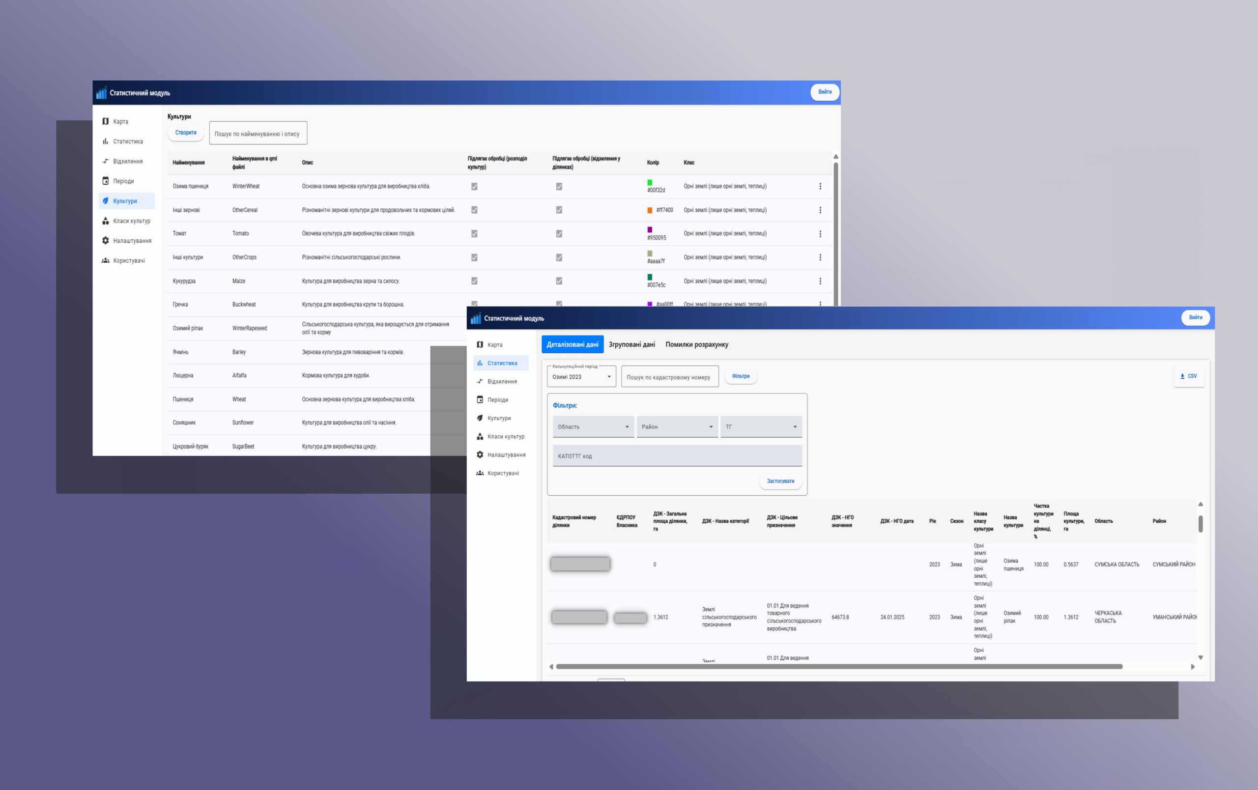 A comprehensive web service for analyzing agricultural land use patterns in Ukraine using satellite data. The system identifies crop types, tracks land discrepancies between satellite imagery and official records, and provides analytical tools for agricultural monitoring and financial access improvement for smallholder farms.